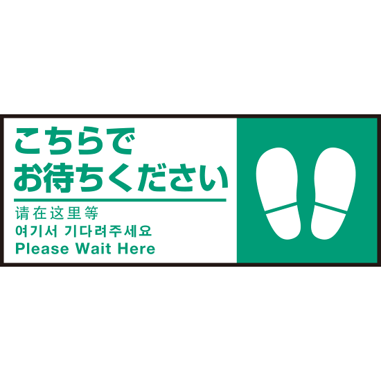 「こちらでお待ちください」の文言に右側に大きく足跡マークを配置したデザイン。