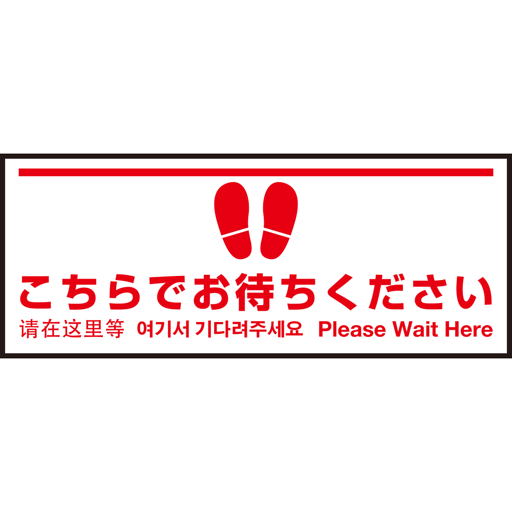 床面サイン フロアラバーマット W75cm×H30cm こちらでお待ちください004 (白線ラインデザイン) 防炎シール付 Eタイプ (PEFS-004-E)