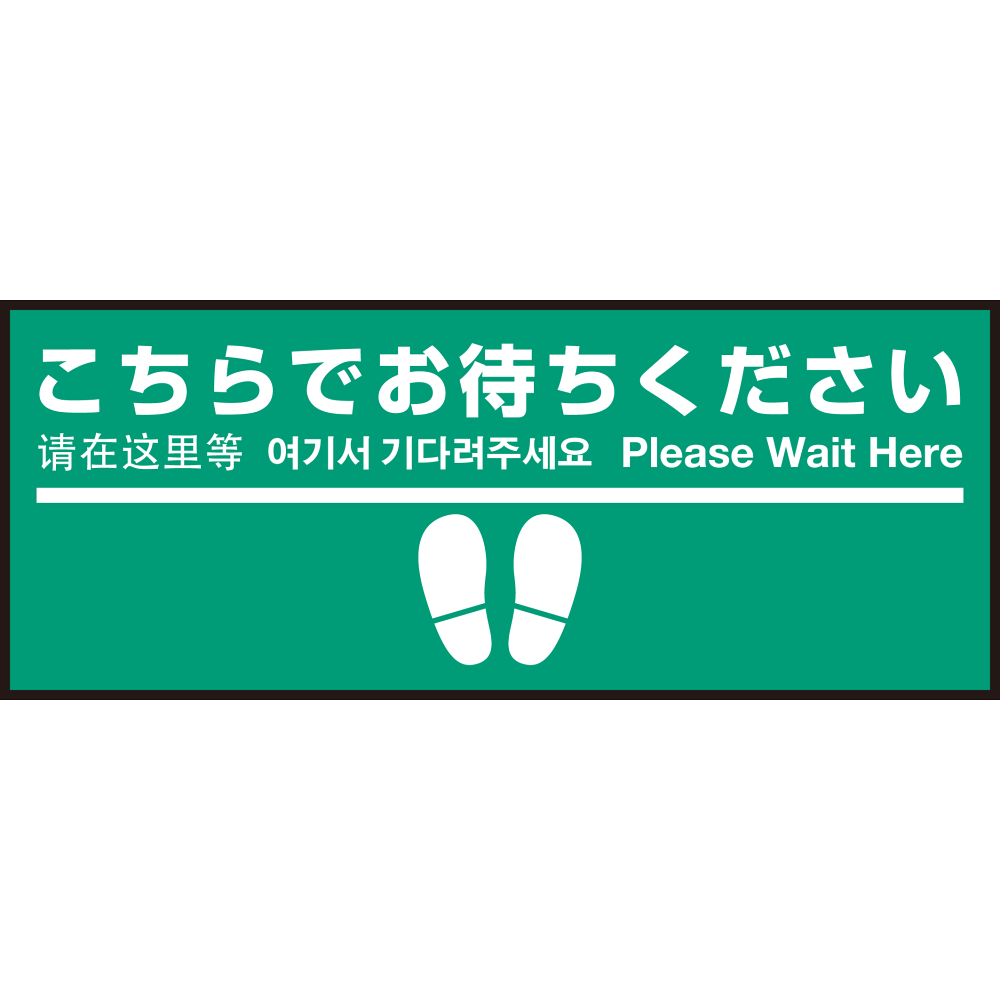 床面サイン フロアラバーマット W75cm×H30cm こちらでお待ちください005 (足跡・白線・文言) 防炎シール付 Cタイプ (PEFS-005-C)
