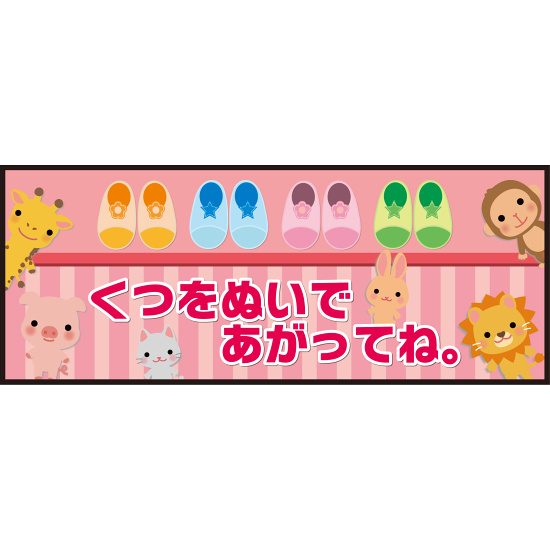 床面サイン フロアラバーマット W75cm×H30cm くつをぬいであがってね 防炎シール付 ピンク (PEFS-050-D)