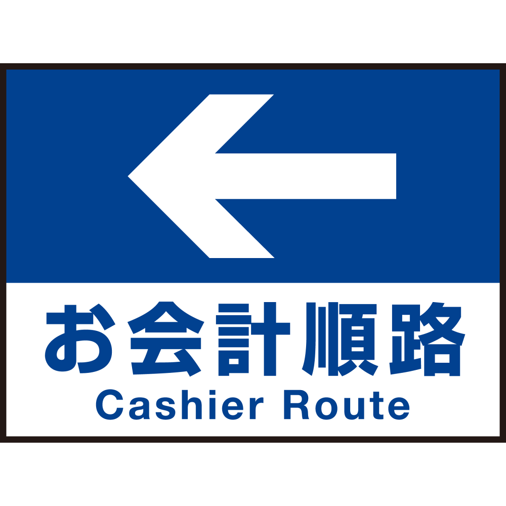 床面サイン フロアラバーマット W60cm×H45cm お会計順路(デザインno.16) 防炎シール付 Aタイプ (PEFS-016-A)