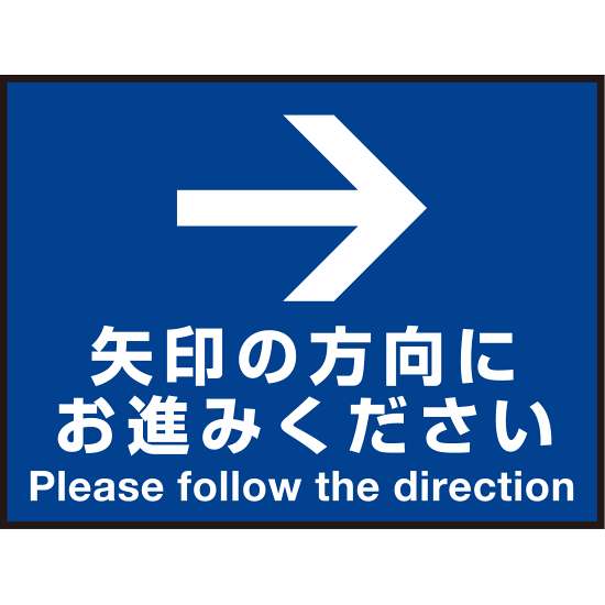 汎用的な誘導フロアサイン。矢印の方向に進むように誘導します。会場や受付までの順路案内などに是非。