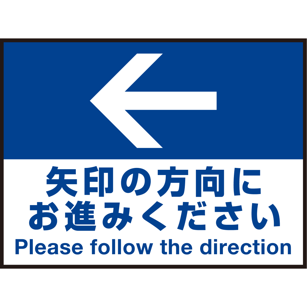 汎用的な誘導フロアサイン。矢印の方向に進むように誘導します。会場や受付までの順路案内などに是非。