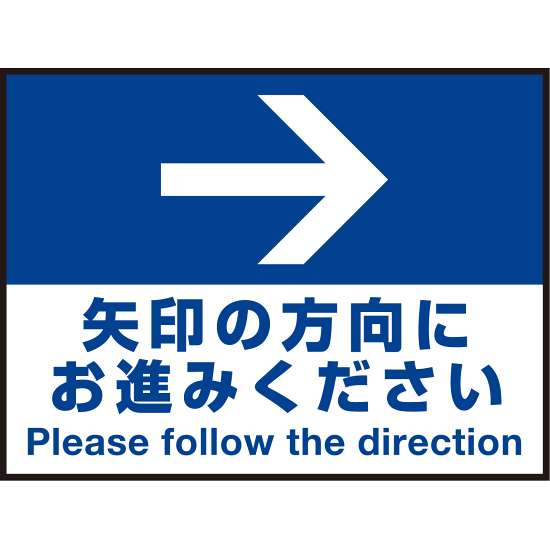 汎用的な誘導フロアサイン。矢印の方向に進むように誘導します。会場や受付までの順路案内などに是非。