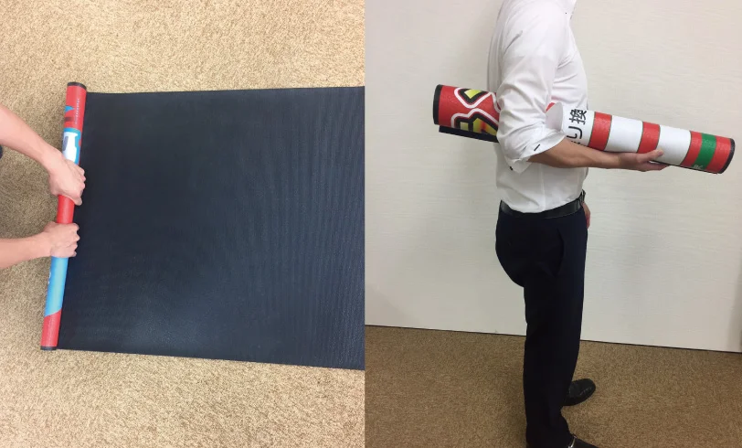 - PEFラバーマットは設置に際して特別な施工は必要ありません。使用予定場所にさっと敷くだけでOK!店舗スタッフの方でも簡単に敷くことができます。