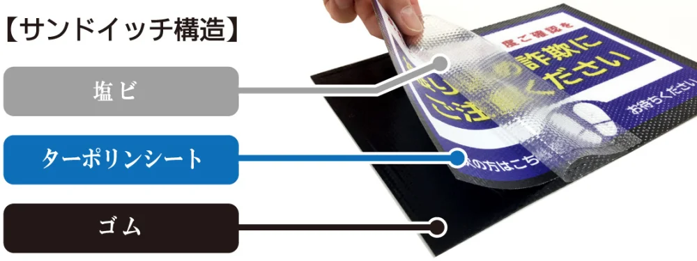 ■安心の日本製。3つの素材の一体化構造で、滑らず、剥がれやめくりが生じません。