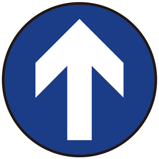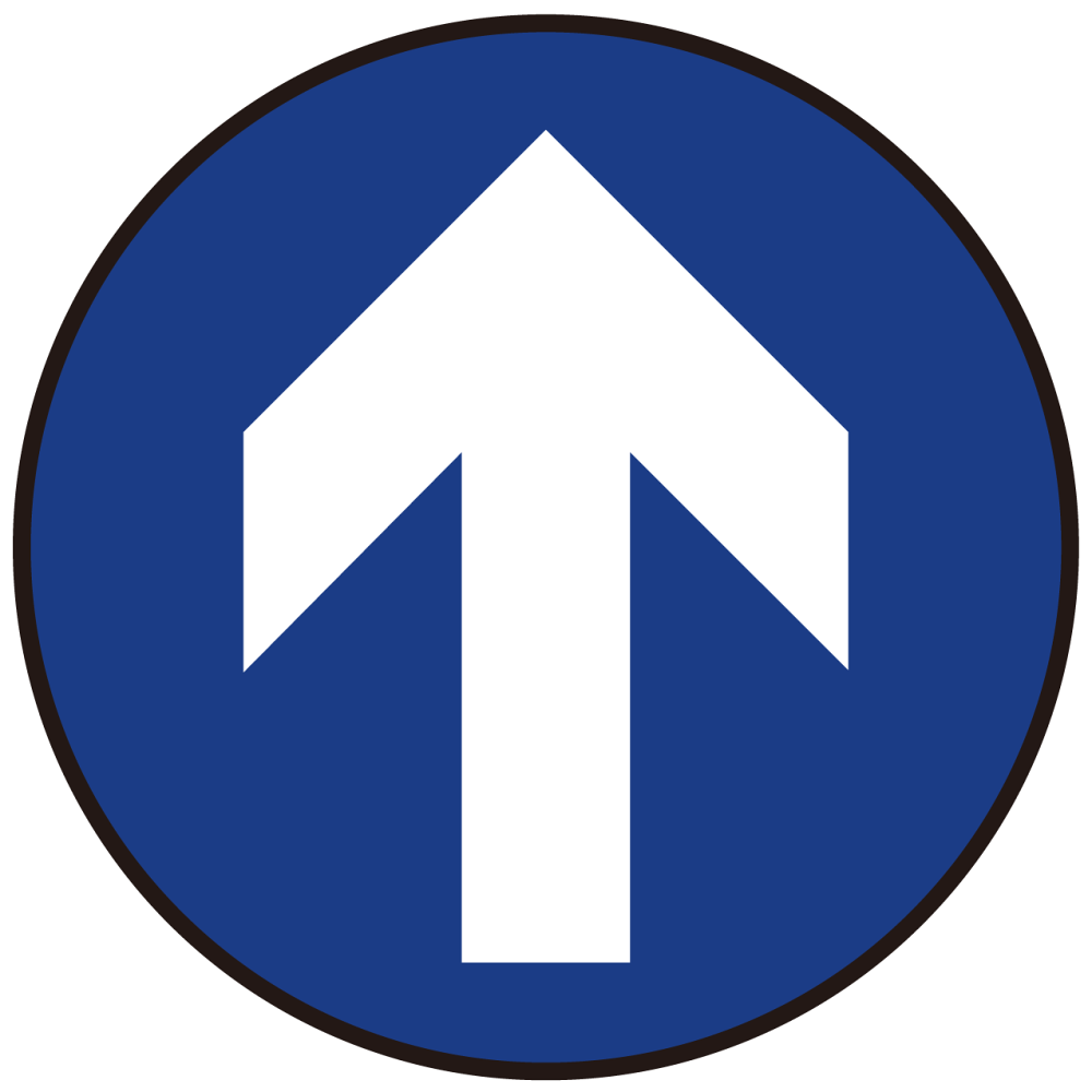 シンプルに矢印のみを表示したデザイン。円形なので設置方向を選びません。汎用的なデザインでアイディア次第で様々な誘導にご利用いただけます。