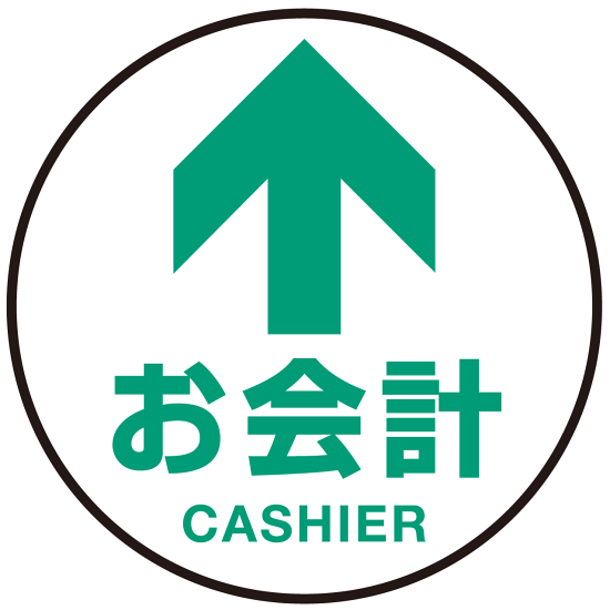 床面サイン フロアラバーマット 円形 お会計(CASHIER) 防炎シール付 Fタイプ 直径45cm (PEFS-010-F(45))