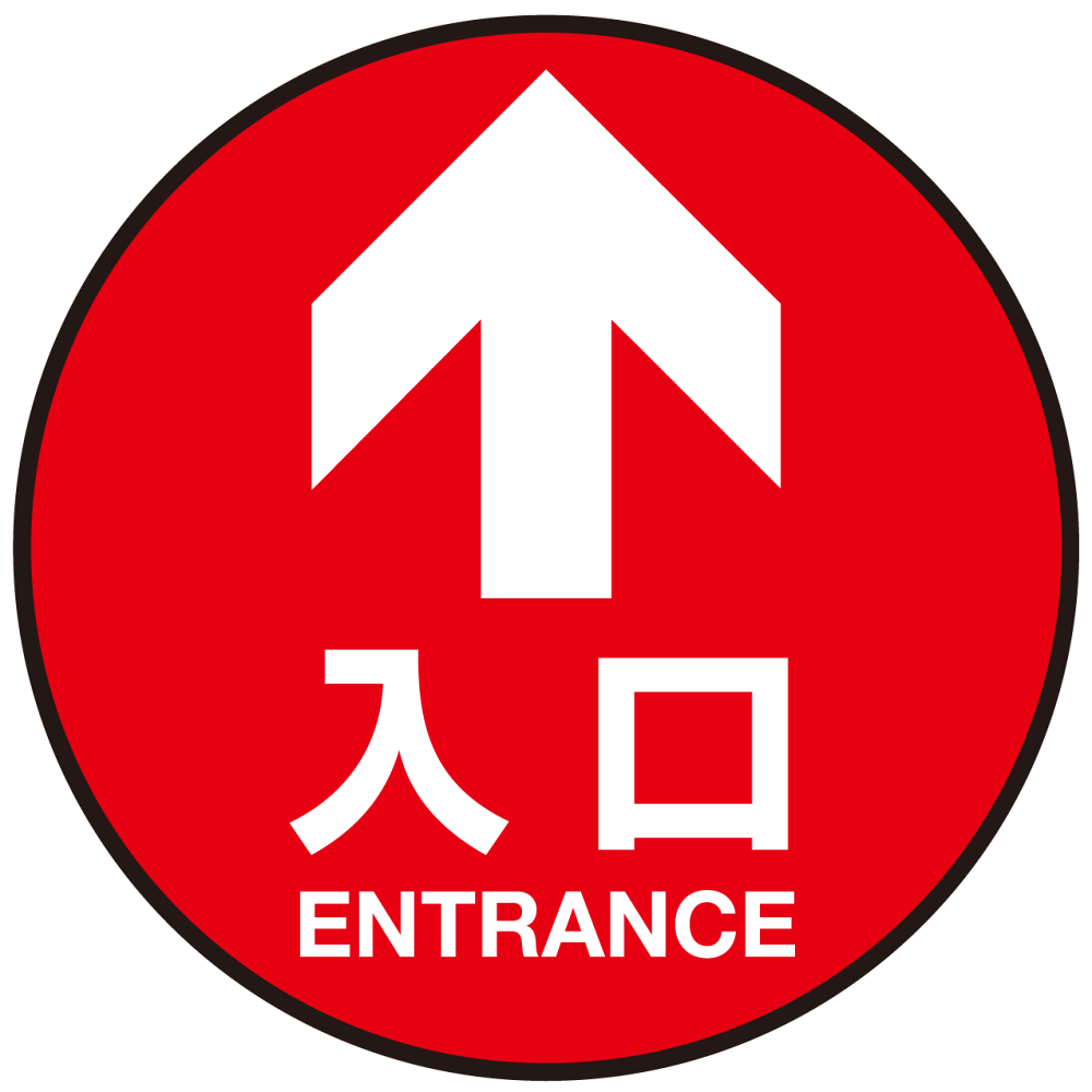 入口を示す・誘導する円形フロアサイン。シンプルに分かりやすく入口の場所を案内できます。
