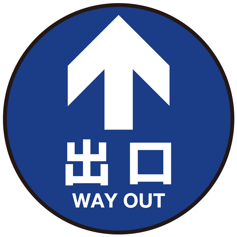 出口の場所を分かりやすく表示。円形なのでフロアにも置きやすく、お客様をスムーズに出口まで誘導できます。