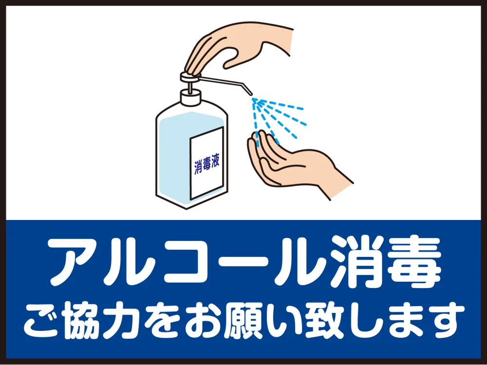 店舗やオフィス・施設のエントランスで、手指のアルコール消毒のご利用をお願いするフロアサイン。