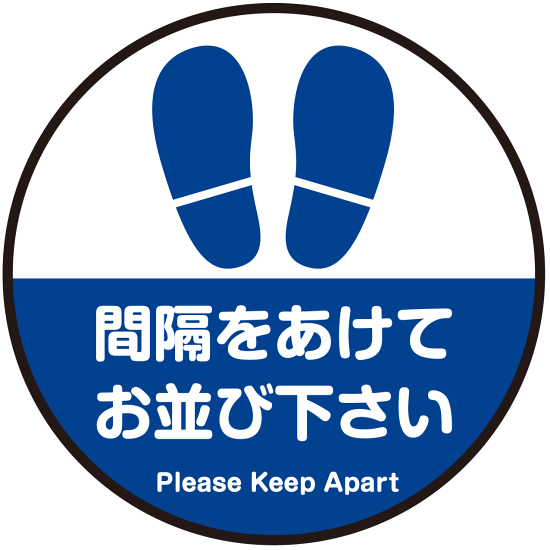 商品説明:間隔をあけてお並び下さい 円形 床面サイン フロアラバーマット 防炎シール付 Dタイプ 直径45cm (PEFS-062-D(45))