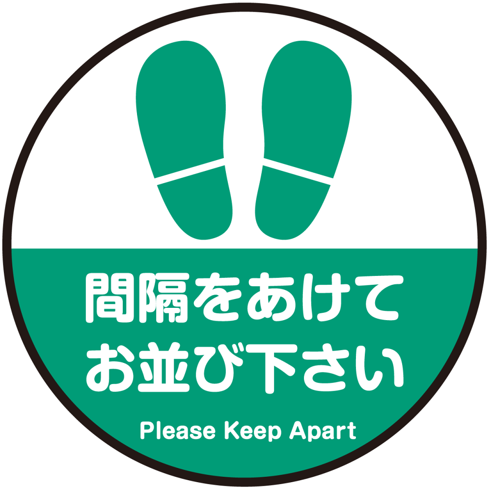 間隔をあけてお並び下さい 円形 床面サイン フロアラバーマット 防炎シール付 Fタイプ 直径45cm (PEFS-062-F(45))