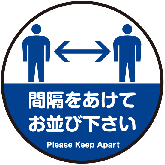 間隔をあけてお並び下さい 円形 床面サイン フロアラバーマット 防炎シール付 Aタイプ 直径30cm (PEFS-062-A(30))