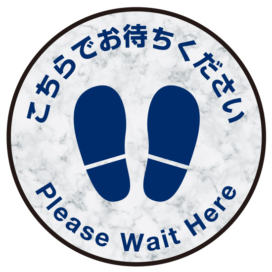 床面サイン フロアラバーマット 円形 こちらでお待ちください デザイン007(テクスチャシリーズ) 防炎シール付 大理石 直径40cm (PEFS-007-I(40))