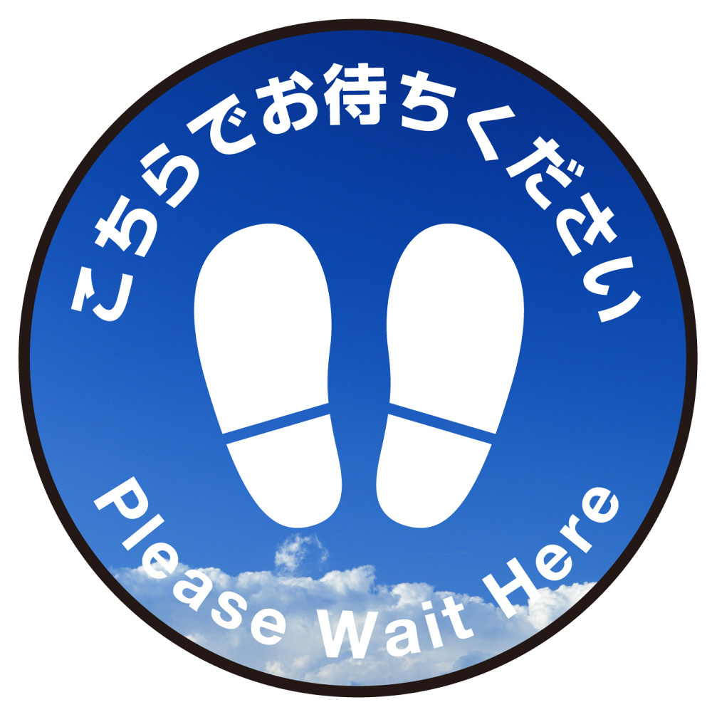 床面サイン フロアラバーマット 円形 こちらでお待ちください デザイン007(テクスチャシリーズ) 防炎シール付 青空 直径40cm (PEFS-007-K(40))