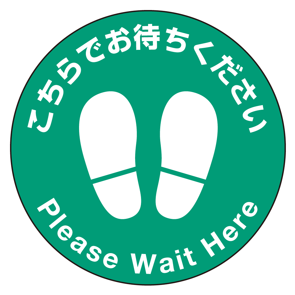 フロアシート 糊付丸形 Φ30cm 「こちらでお待ちください」床面滑り止め加工ラミネート仕様 Cタイプ
