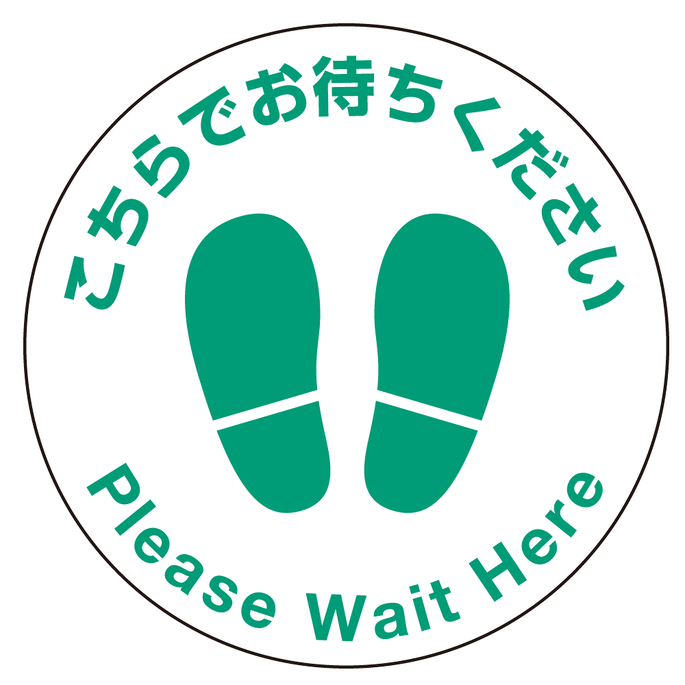 フロアシート 糊付丸形 Φ30cm 「こちらでお待ちください」床面滑り止め加工ラミネート仕様 Fタイプ