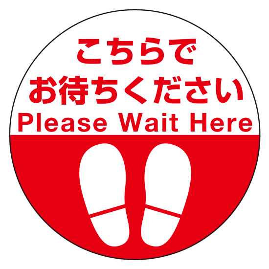 - フロアシート 糊付丸形 Φ30cm 「(上段)こちらでお待ちください(下段)足跡マーク」床面滑り止め加工ラミネート仕様 Bタイプ