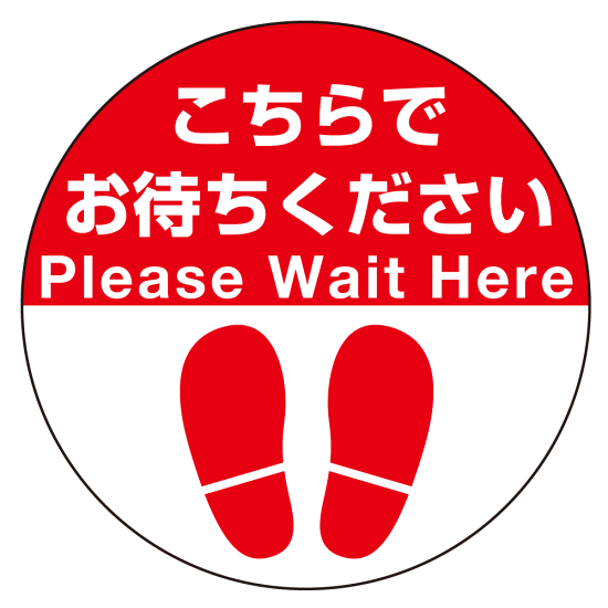 フロアシート 糊付丸形 Φ30cm 「(上段)こちらでお待ちください(下段)足跡マーク」床面滑り止め加工ラミネート仕様 Eタイプ
