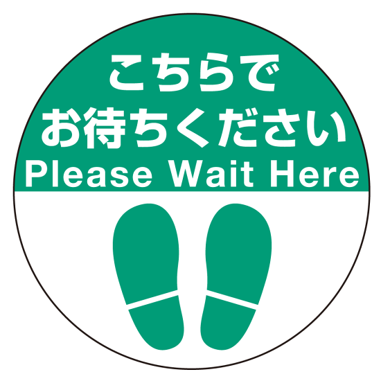 - フロアシート 糊付丸形 Φ30cm 「(上段)こちらでお待ちください(下段)足跡マーク」床面滑り止め加工ラミネート仕様 Fタイプ