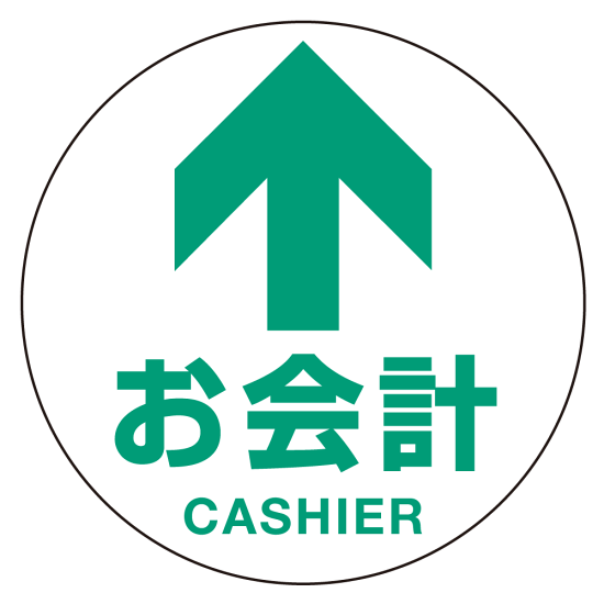 フロアシート 糊付丸形 Φ30cm 「矢印・お会計」床面滑り止め加工ラミネート仕様 Fタイプ
