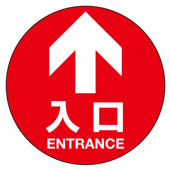 フロアシート 糊付「矢印・出口」床面滑り止め加工ラミネート仕様 白文字/赤地 丸形(Φ30cm) ¥1,067