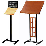 メニューや記名帳を表示面に置いて使用するタイプの他、ライト付きのメニューライトスタンドなど、素材も木製やスチール製、サイズのバリエーションも複数ございます。