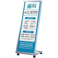 表示面に傾斜がついているスタンド看板。横から見た時に「L」の字型になっているのが特徴。片面なので壁面に寄せて設置するのに最適。