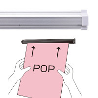 上下のバーにポスターやバナーを取り付けて壁面や天井から吊して掲示するポップ用品。セールやイベントの告知に。