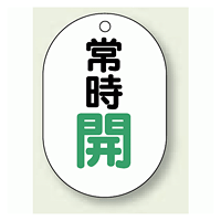 バルブ開閉表示板 小判型 常時開 緑字 70×47 5枚1組 (454-03)