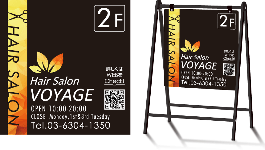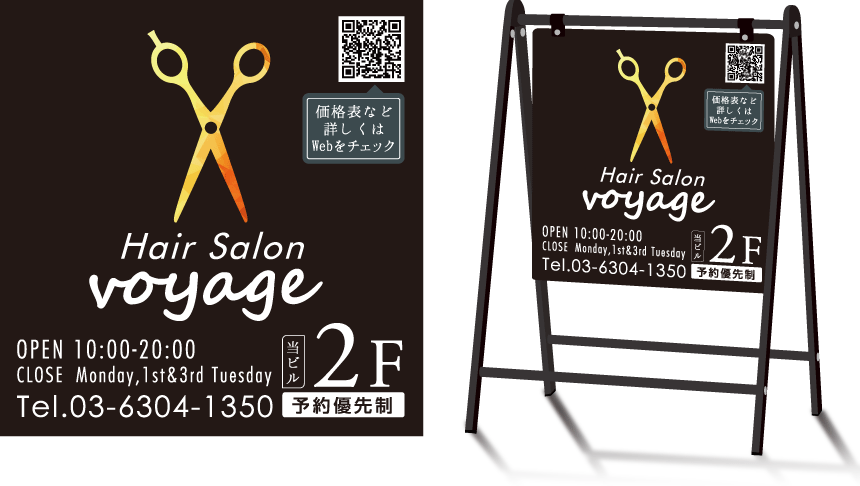看板はお客様に価格表やサービス内容を提示するだけでなく、店舗の雰囲気やコンセプトを表すものです。美容室にはオシャレや美に意識の高いお客様が来店されるので、最初に目にする店頭の看板はオシャレにしたいですね。
