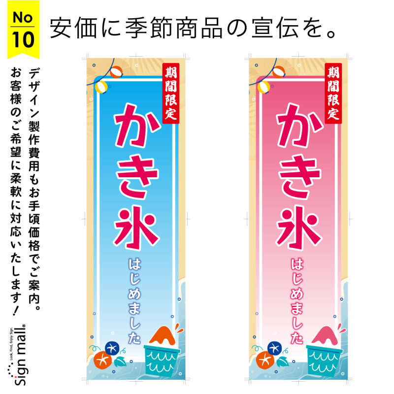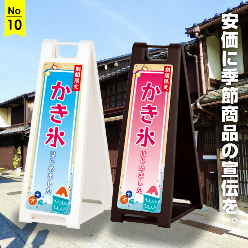 かき氷のPRに。涼し気なデザインのスリムな店頭看板例