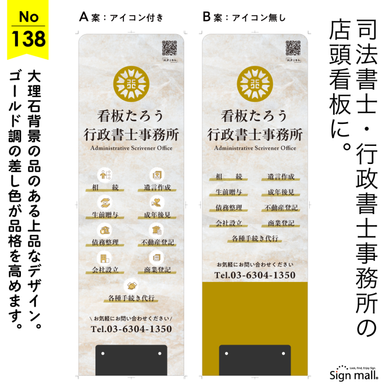 大理石調の落ち着いた信頼感と品のある行政書士・司法書士事務所向け看板デザイン例