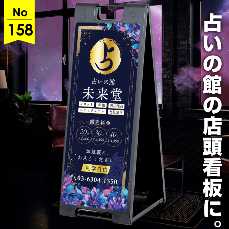 こちらのデザインは、占いの館にぴったりの、豪華で神秘的な雰囲気を持つ看板デザインです。