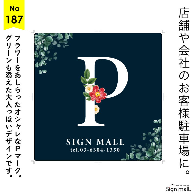 上品なボタニカルデザインの駐車場看板デザイン例
