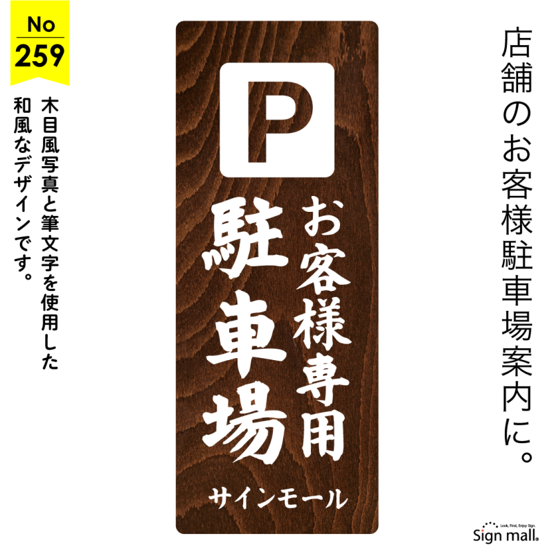 こちらのデザインは、木目調の背景に筆文字を組み合わせた、和の趣を大切にした駐車場案内看板です。