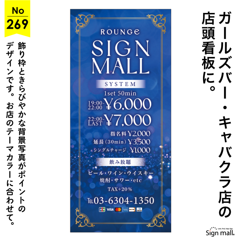 カラーで選べるフレームが華やかなキャバクラ・ガールズバー向け看板デザイン例