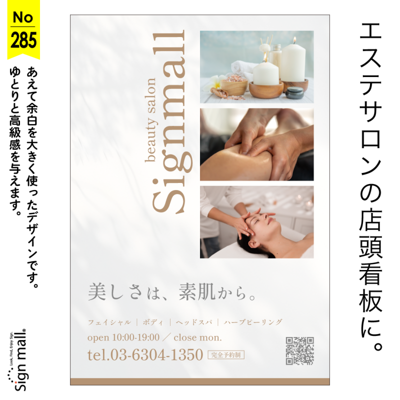 余白で高級感を演出するエステサロン向け店頭看板デザイン例