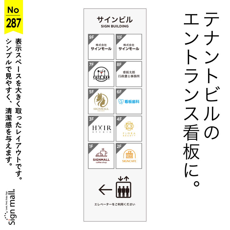 フロア情報がひと目で伝わるテナントビル向けエントランス看板デザイン例