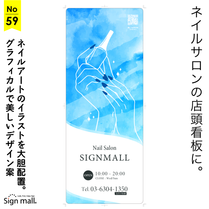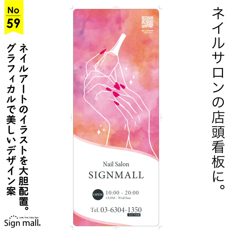 ネイルアートのイラストを大胆配置!グラフィカルで美しいネイルサロン向け看板デザイン例