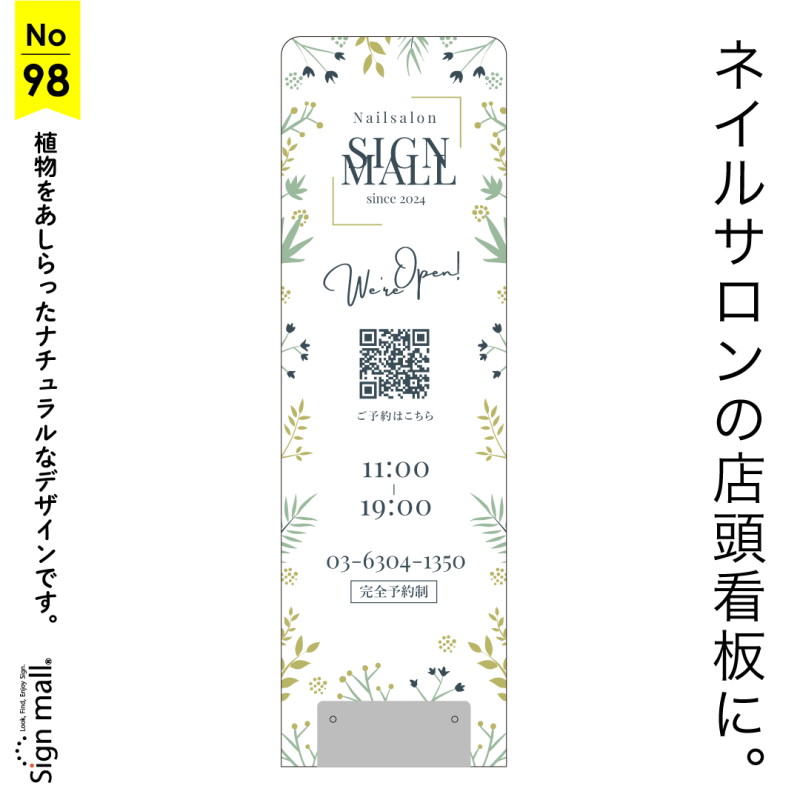 植物をあしらったナチュラルテイストのネイルサロン向け看板デザイン例