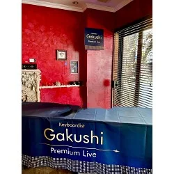 ゴールド柄がゴージャスな雰囲気を演出するライブコンサート用オリジナルテーブルクロスを製作いたしました。