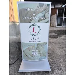 リラクゼーションサロン様の店頭看板に電飾スタンド看板を製作させていただきました。